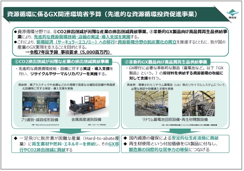 資源循環の推進のため、必要な予算も要求している。環境省の機構・定員についても、参事官(資源循環推進担当)の新設を要求している。